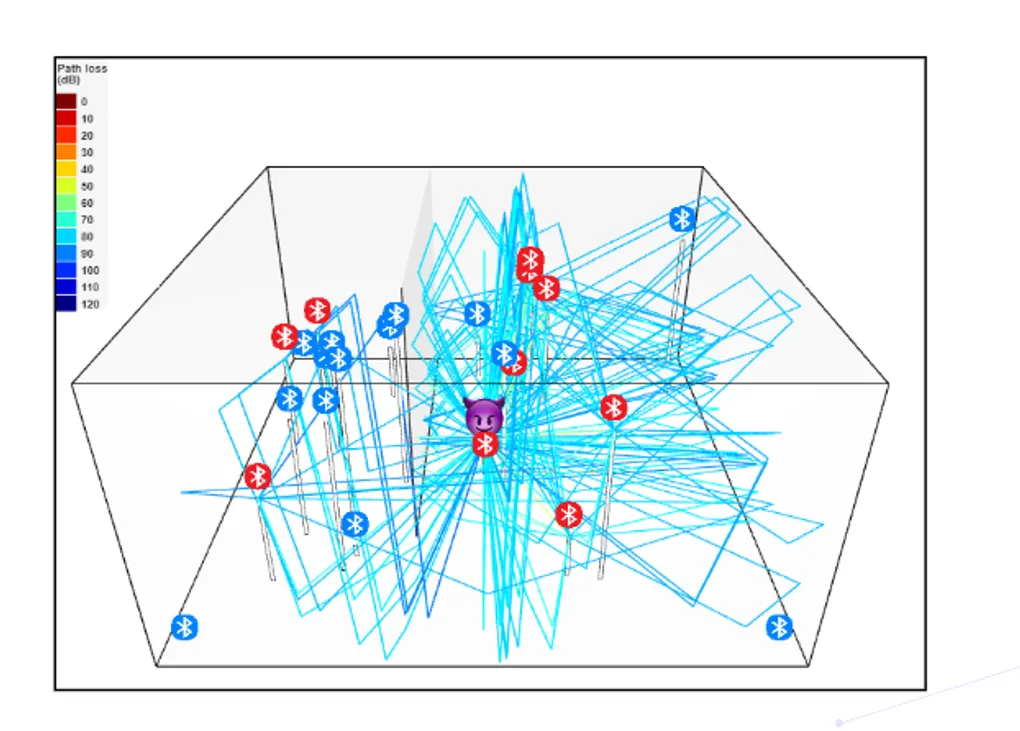 My teammate Eli created a file called bigeli.stl as a testing environment—a simple room with one wall. I decided to use ray tracing to calculate the multipath fading model for path loss. To test this, I placed two BLE devices in the room.